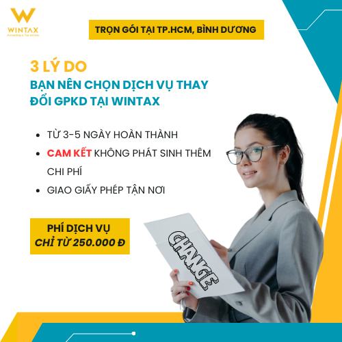 Tuy nhiên, quá trình thay đổi Giấy phép đăng ký kinh doanh công ty đòi hỏi tuân thủ nghiêm ngặt các quy định pháp lý và thực hiện nhiều thủ tục hành chính. Để giúp doanh nghiệp tiết kiệm thời gian và đảm bảo tính chính xác, WINTAX cung cấp dịch vụ thay đổi giấy phép kinh doanh tại TP. Hồ Chí Minh và Bình Dương – Giá Rẻ, Nhanh Chóng, Uy Tín & Chuyên Nghiệp.